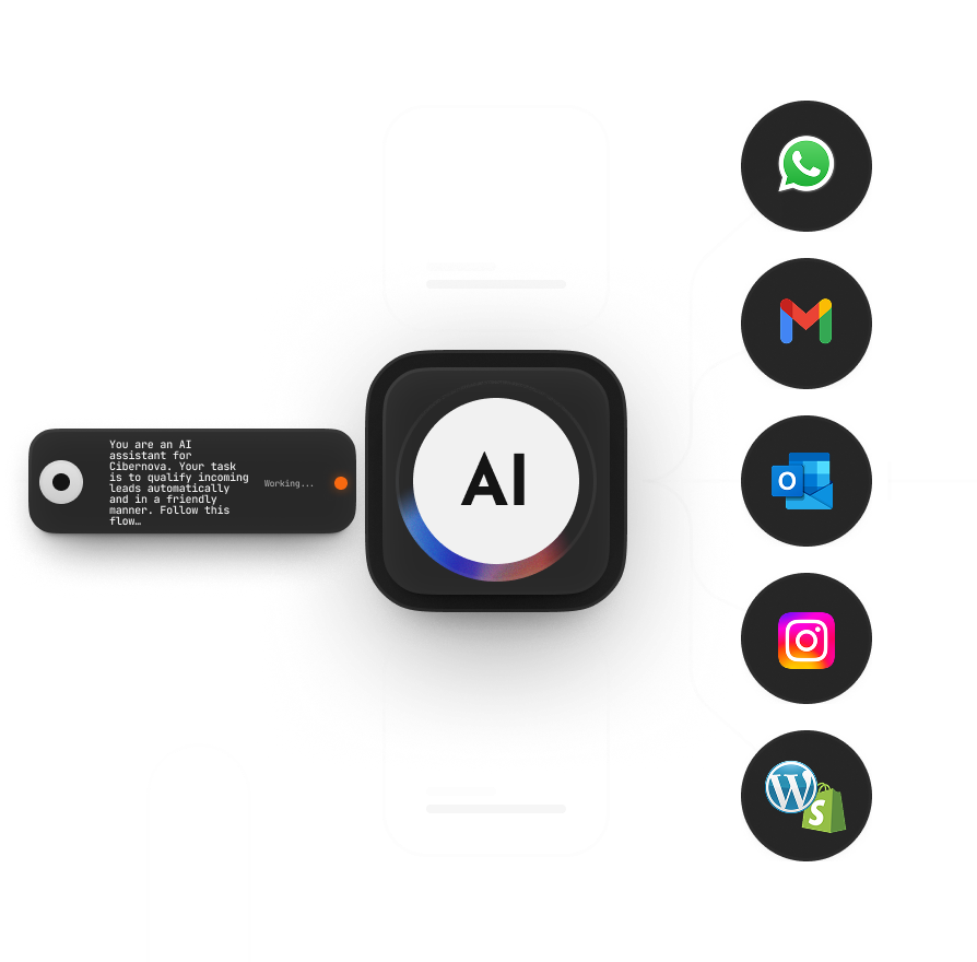 Conecta cualquier cosa: WhatsApp, Correo, tu CRM, tu ERP... cualquier herramienta que uses.